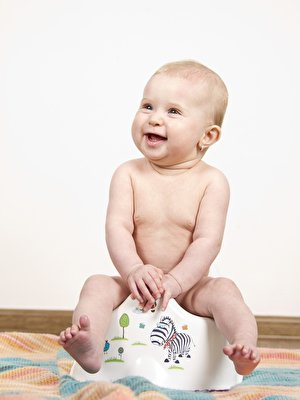 2. Ga zo ver mogelijk naar achter op het toilet zitten met gespreide benen.